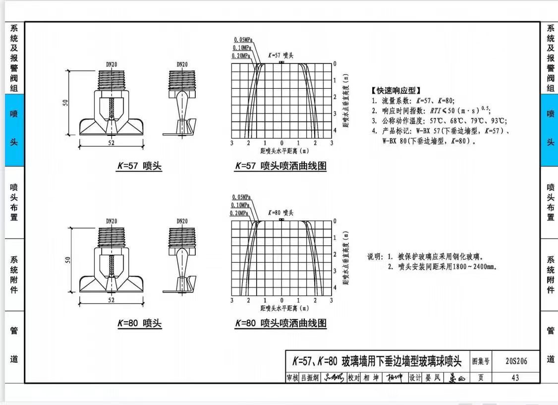 | 1 | 玻璃墙用下垂喷头 | 国标 | DN20 | 63(个) | K=80 |