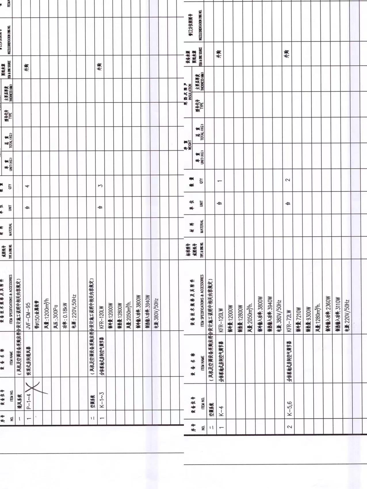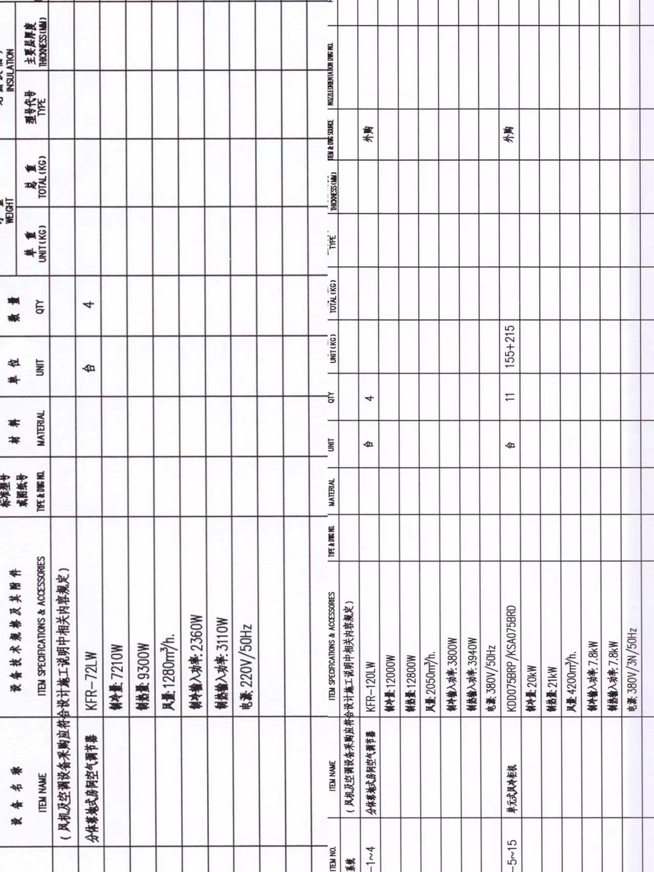 KFR-120LW 制冷量:12000W 制热量:12800W 风量:2050m³/h 制冷输入功率:3800W 制热输入功率:3940W 电源:380V/50HZ |