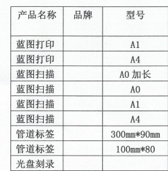 | 1 | 蓝图打印及扫描 | / | / | / | / | 1(批) | / |