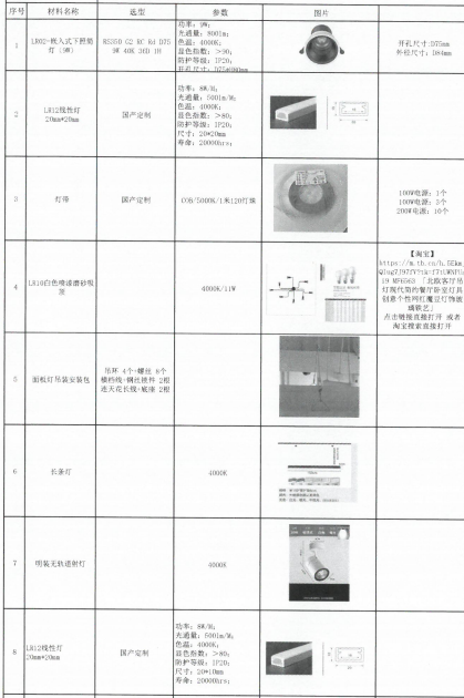 | 1 | 照明灯具 | / | / | / | / | 1(批) | / |