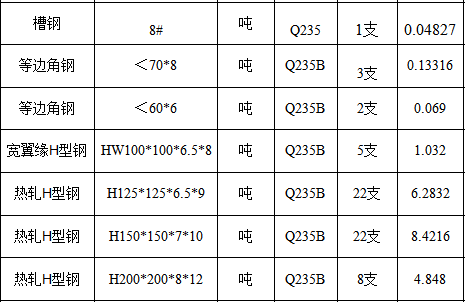 | 1 | 热轧H型钢 | H150*150*7*10 | 20(吨) |