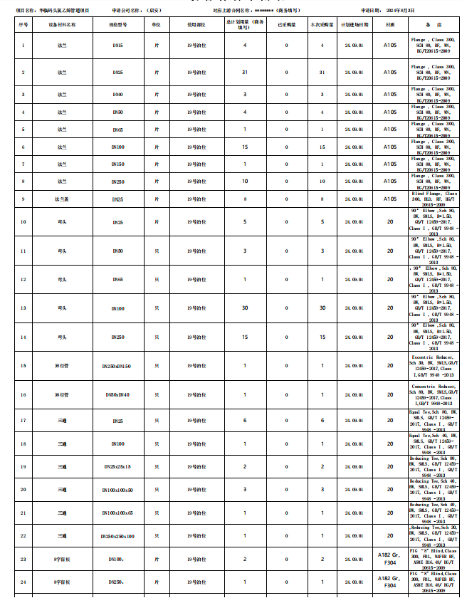 | # | 商品名称 | 品牌 | 标准 | 材质 | 型号 | 数量(单位) | 技术参数 |