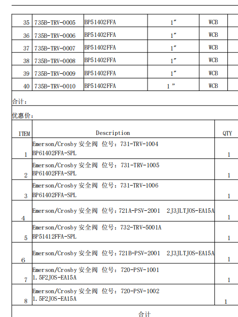 | 1 | 安全阀 | 艾默生 | 见附件清单 | 1(件) | 件附件清单 |