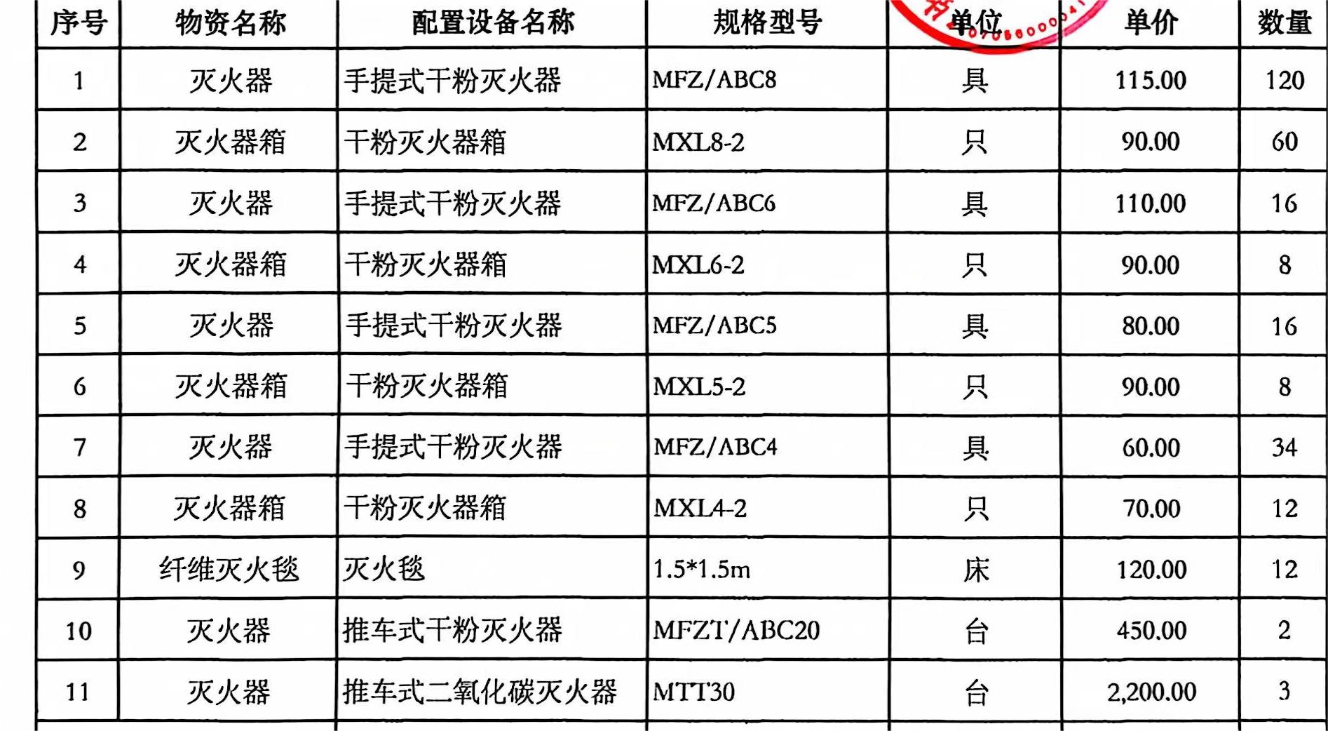| 1 | 消防产品 | 见附件 | 1(批) |