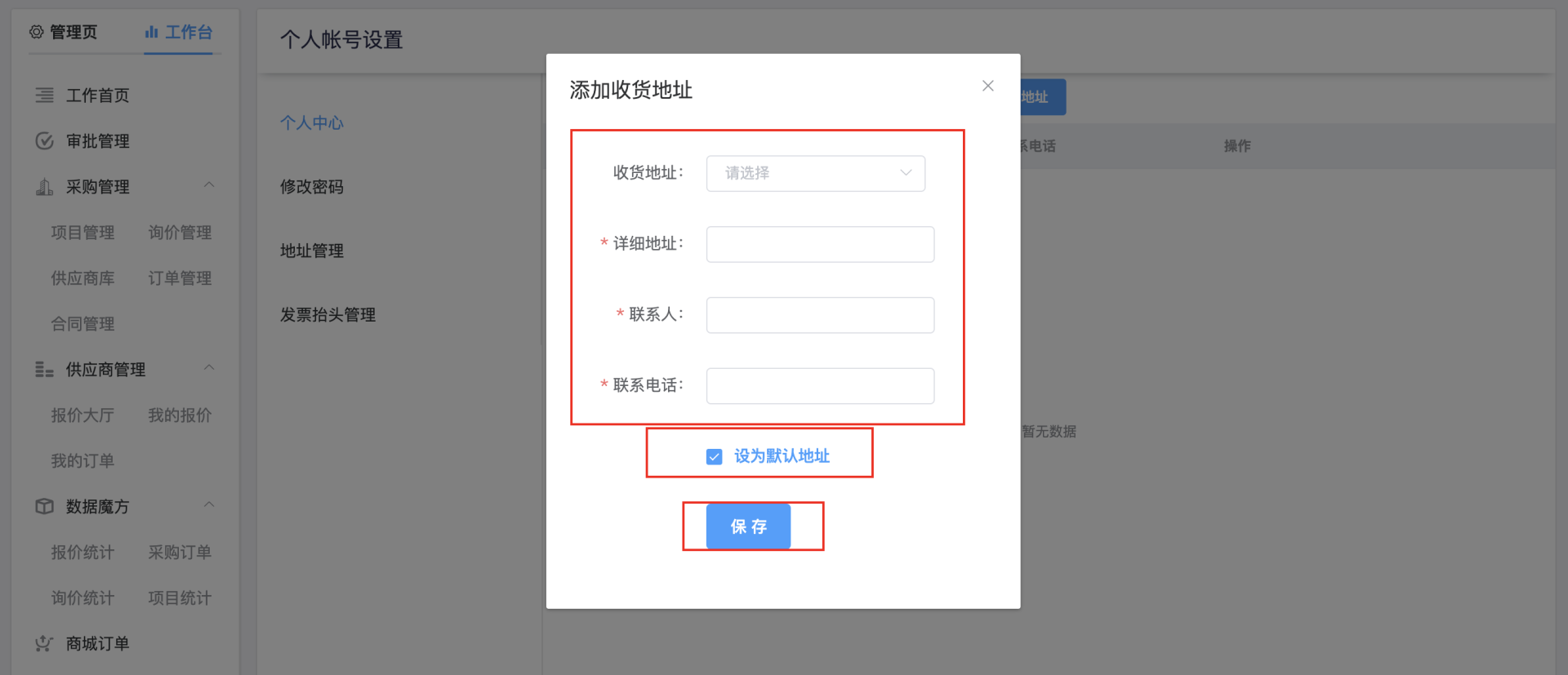2、点击【地址管理】,修改或者增加自己的收货地址。
