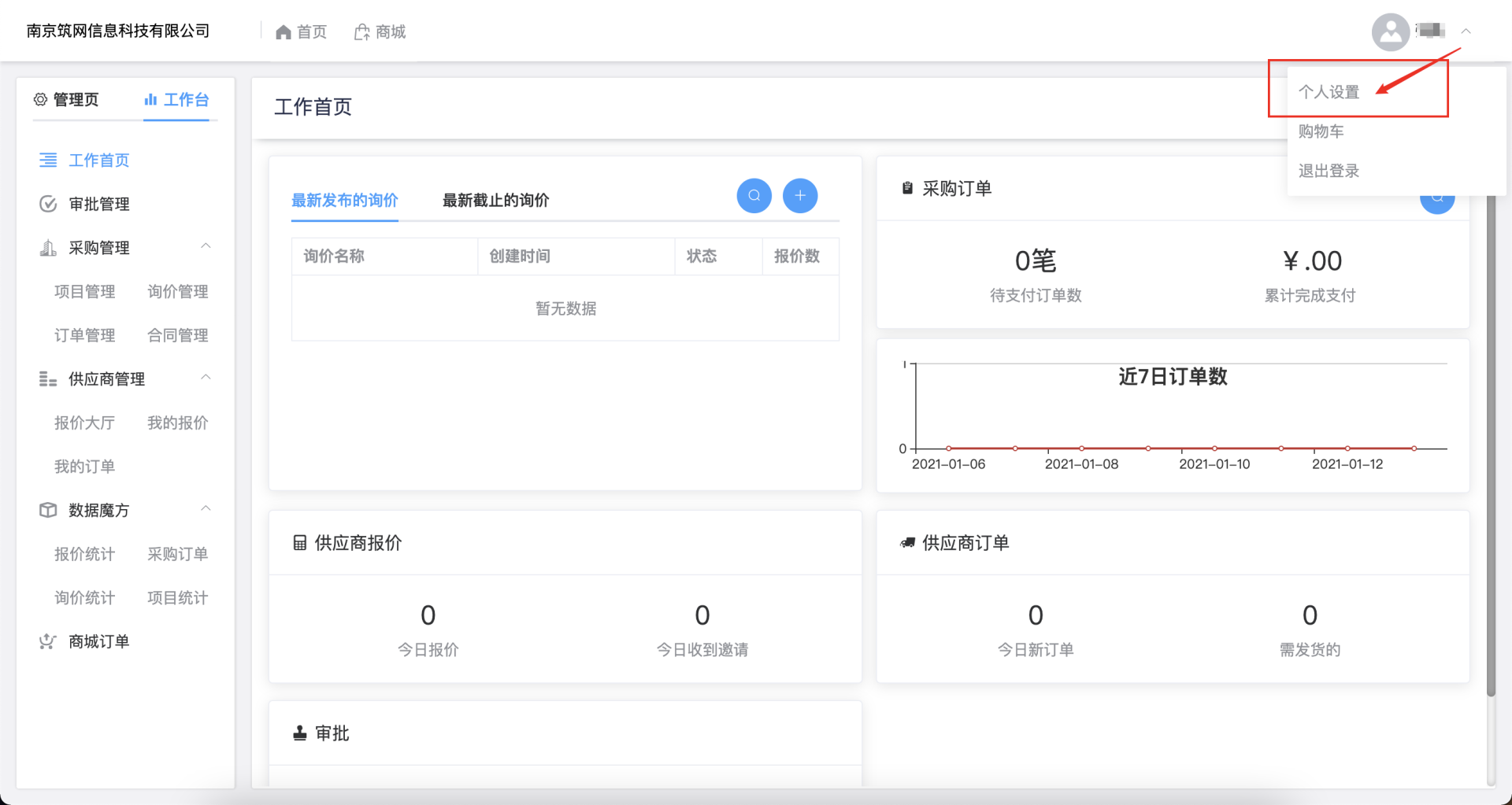1、进入用户中心界面,点击顶部的【个人设置】;