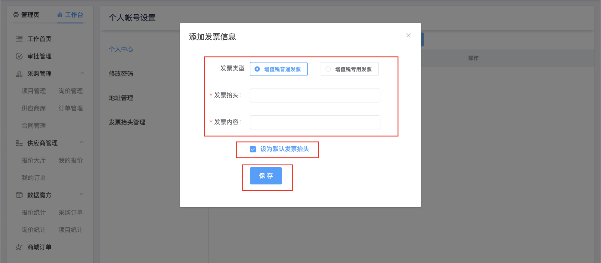 2、点击【发票抬头管理】,修改或者增加自己的发票抬头。