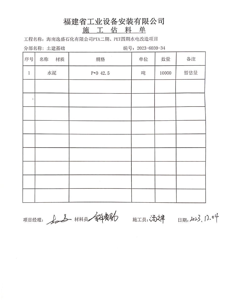 F-134,海南逸盛石化PTA二期项目,水泥邀请招标,2023.12.07