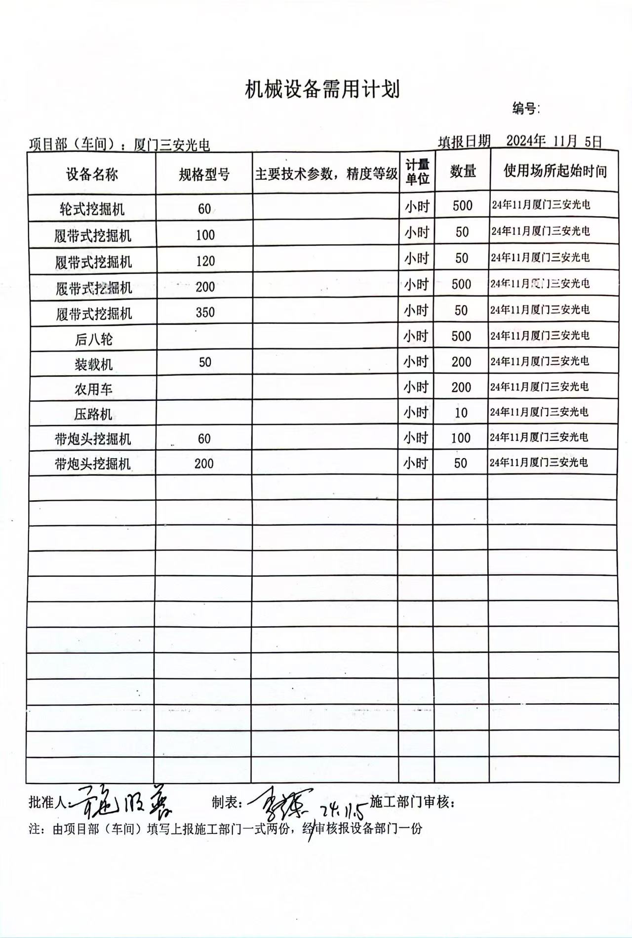| 4 | 履带式挖掘机 | 200 | 500(小时) | ||||